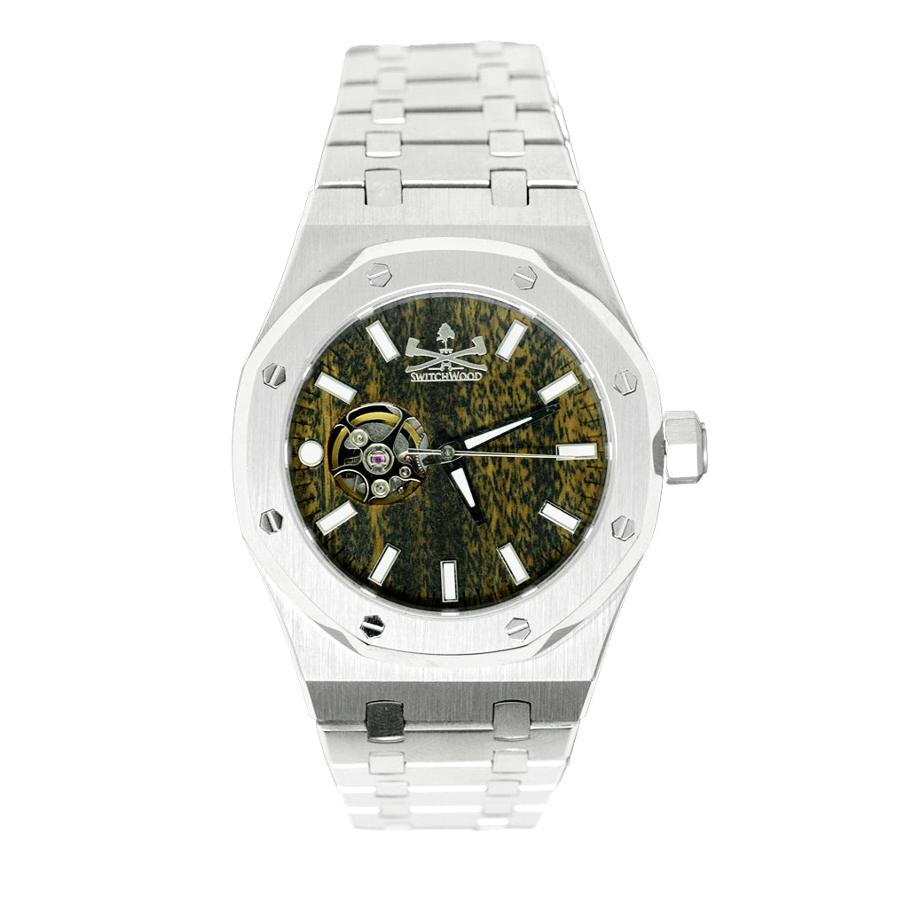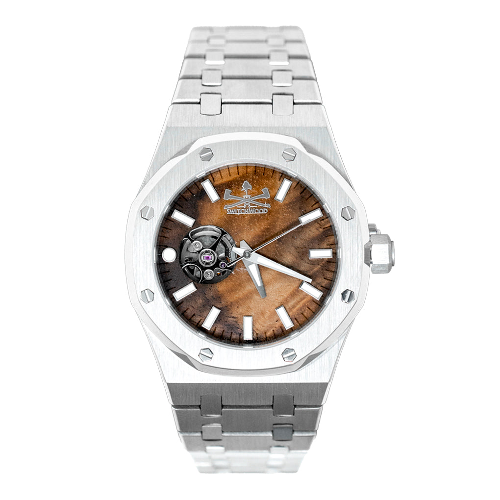 Open Heart Watch - Bocote Dial Brown Leather Strap