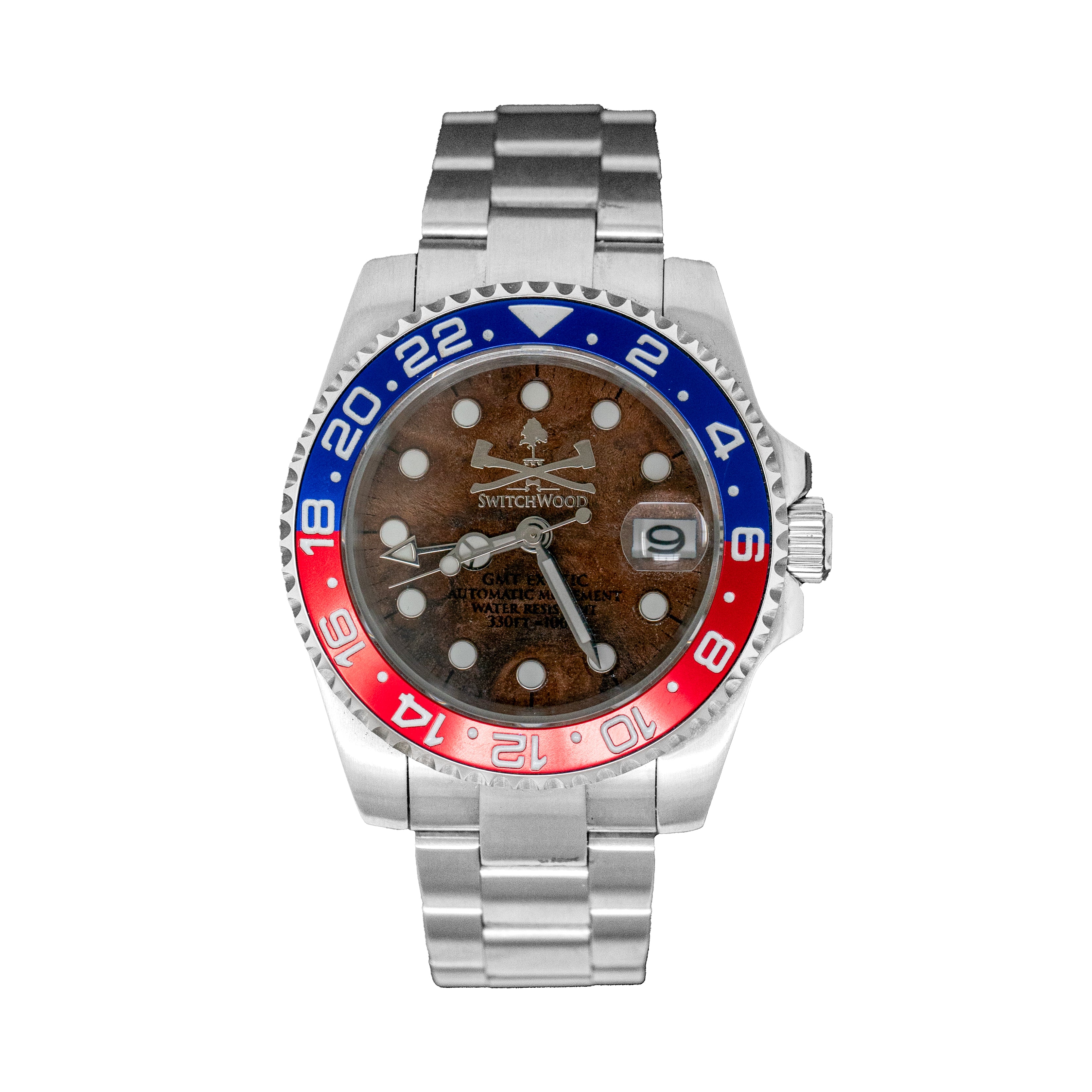 GMT Red/Blue Bezel Walnut Watch