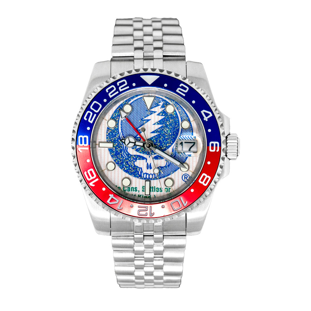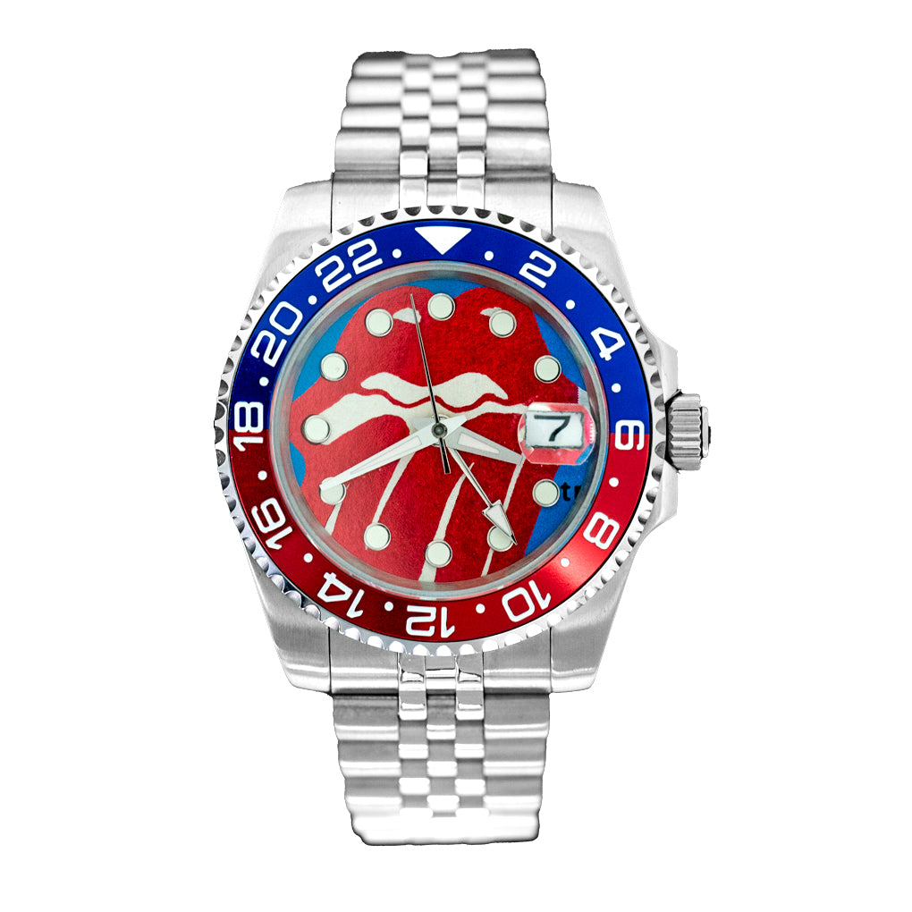 GMT Watch - Red/Blue Bezel Walnut Dial