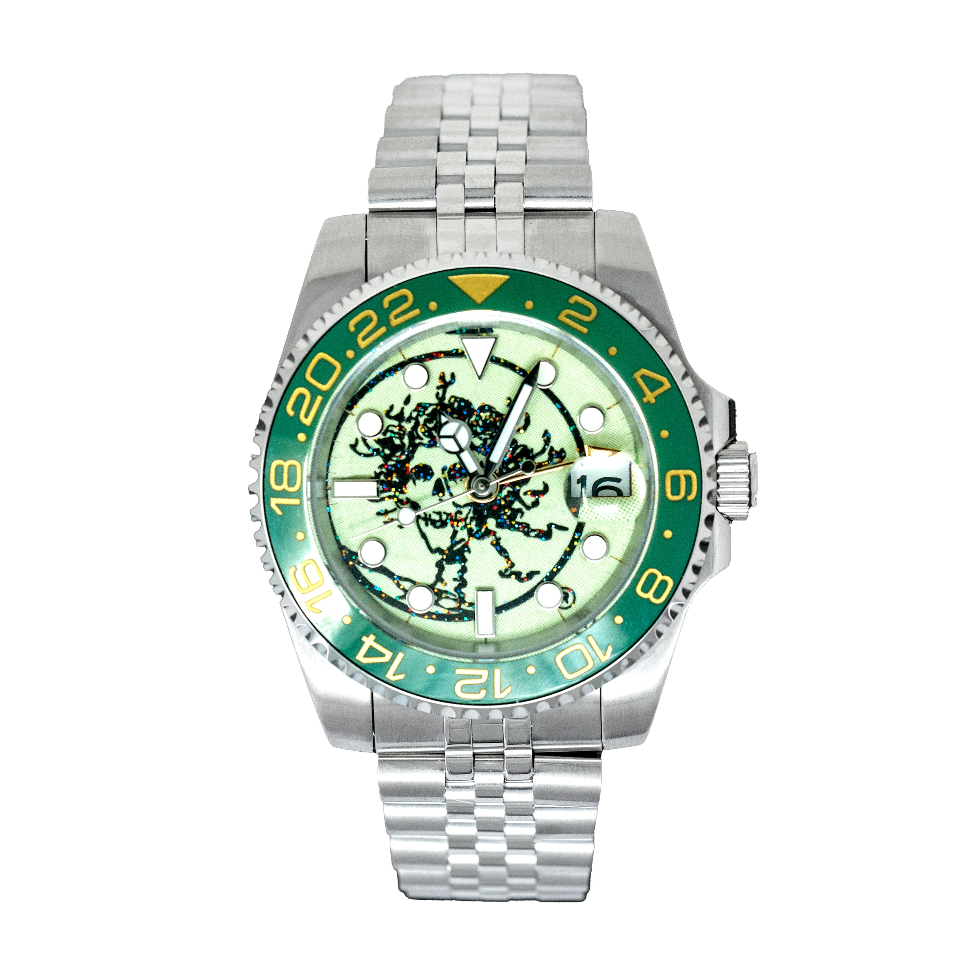 GMT Watch - Skate Deck Dial Green Black Bezel