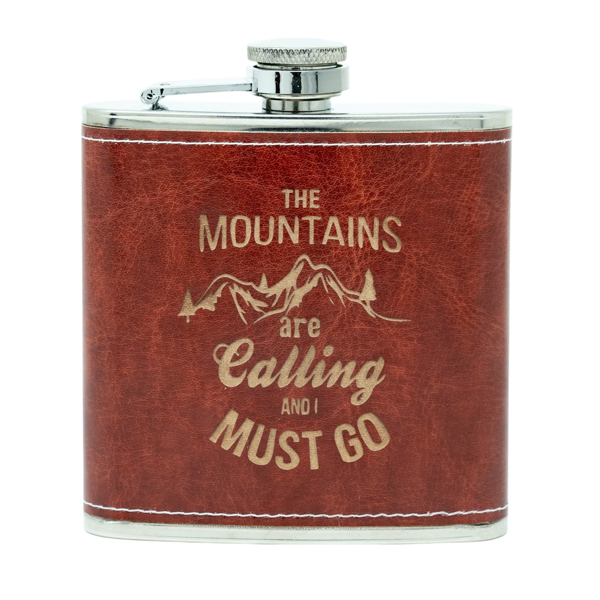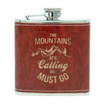 Mountains Are Calling Leather Flask