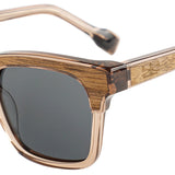 Venice takes the fusion of acetate and wood and gives it a stronger, more architectural presence. Featuring rectangular, squared-off lenses, this frame delivers a confident, structured silhouette built for those who prefer bold definition over soft curves. A precision cut wooden inlay is set directly into the acetate on the front of the frame, seamlessly integrated for a refined yet powerful contrast. The warmth of natural wood against the polished acetate creates depth and texture without compromising the clean geometry. A small keyhole nose bridge adds just enough vintage influence to balance the modern strength of the frame, keeping it timeless rather than trendy.
